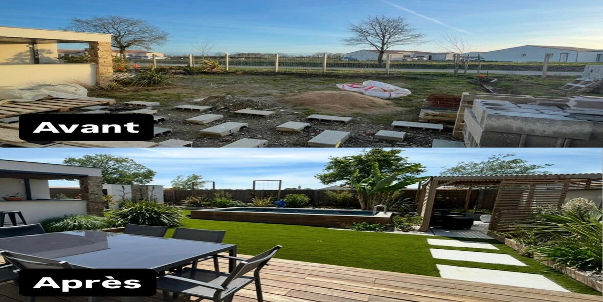 Aménagement d'un jardin autours d'une piscine à Falleron