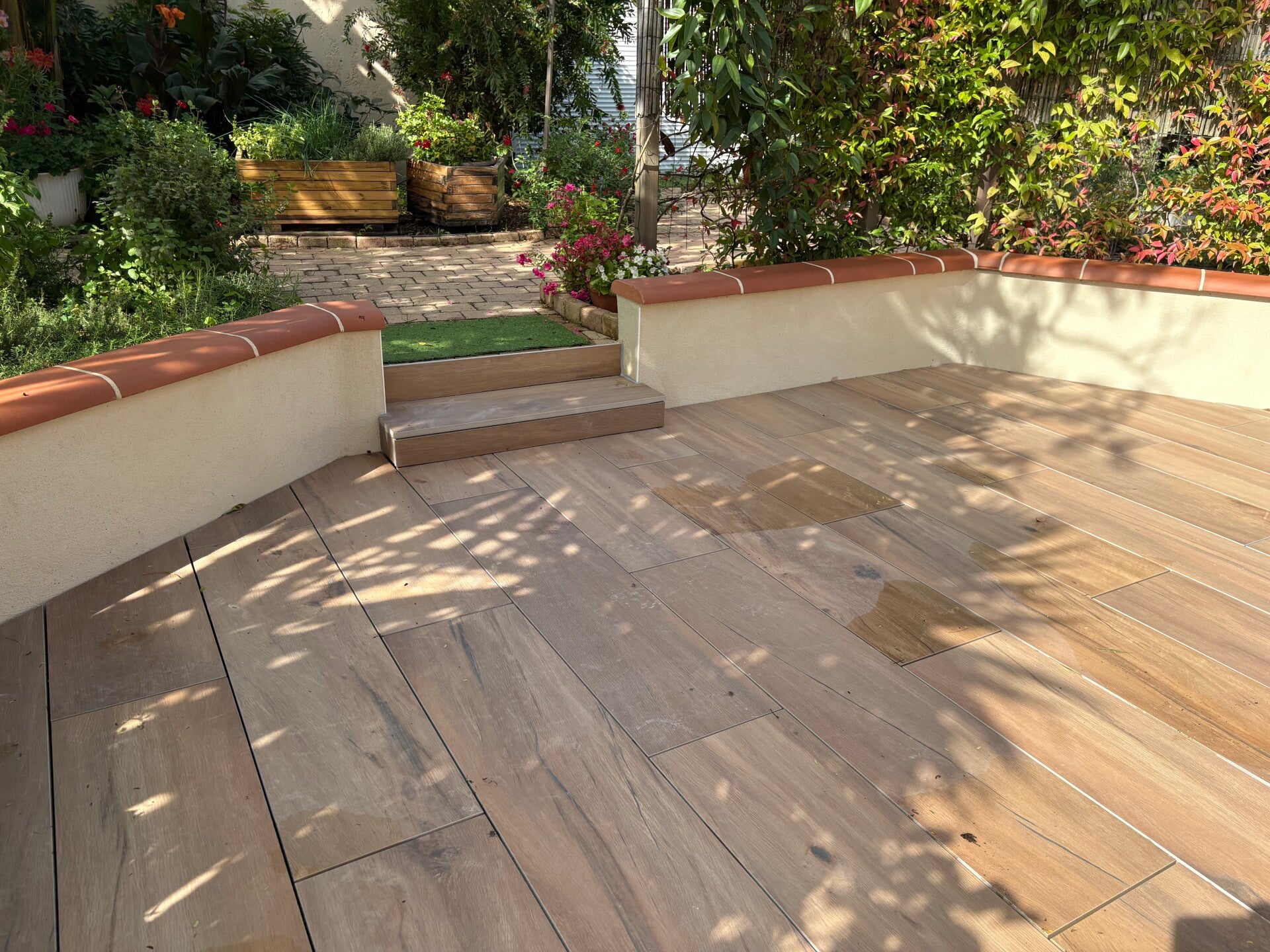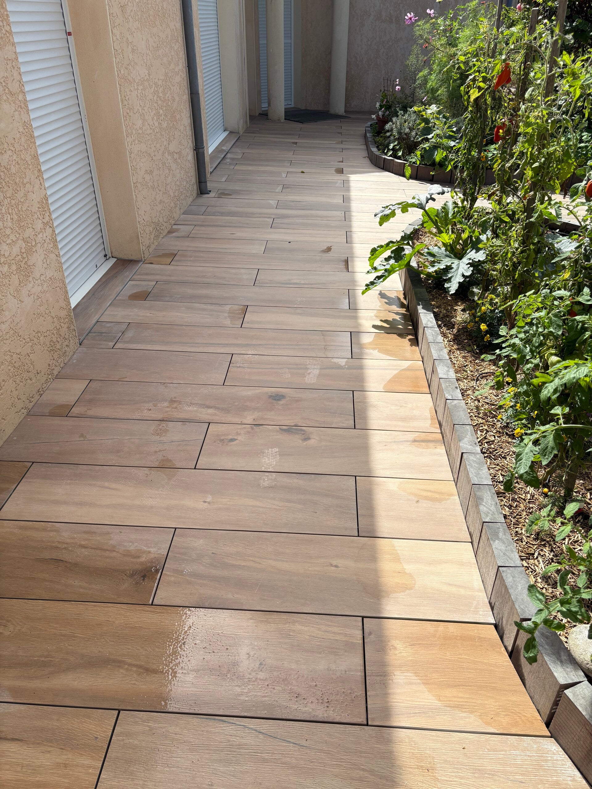 - Terrasse en dalles béton 80x80cm avec joints gris